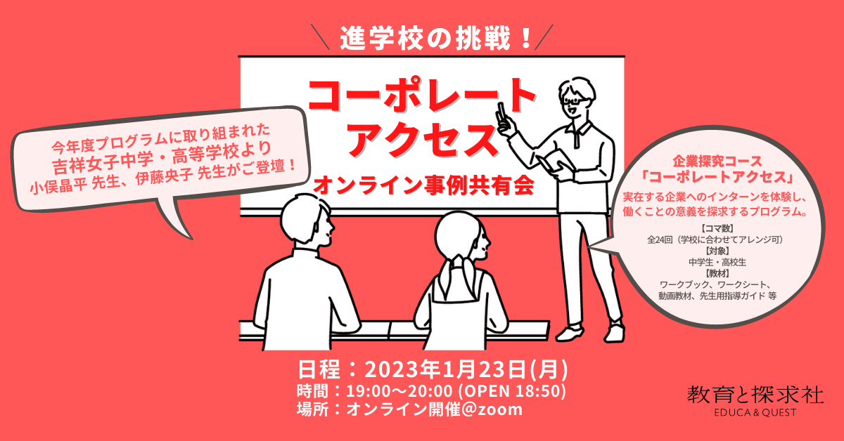【1/23(月)開催 先生向け】吉祥女子中高 小俣先生、伊藤先生ご登壇!企業をテーマにした探究学習「コーポレートアクセス」事例共有会 お申し込みフォーム